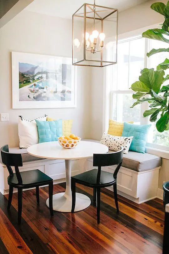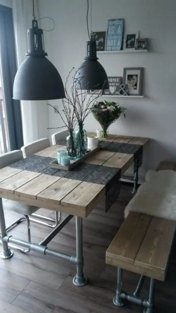 Daca spatiul destinat dining-ului iti permite sa amesteci diferite tipuri de piese de mobilier, poti opta pentru o banca caracterizata prin linii simple si moderne alaturi de care sa adaugi cateva scaune in stil vintage. O alta idee pe care ti-o recomandam este sa vopsesti bancile si scaunele in culori care sa se completeze sau sa le uniformizezi culorile si sa le decorezi cu textile si perne in tonuri contrastante.