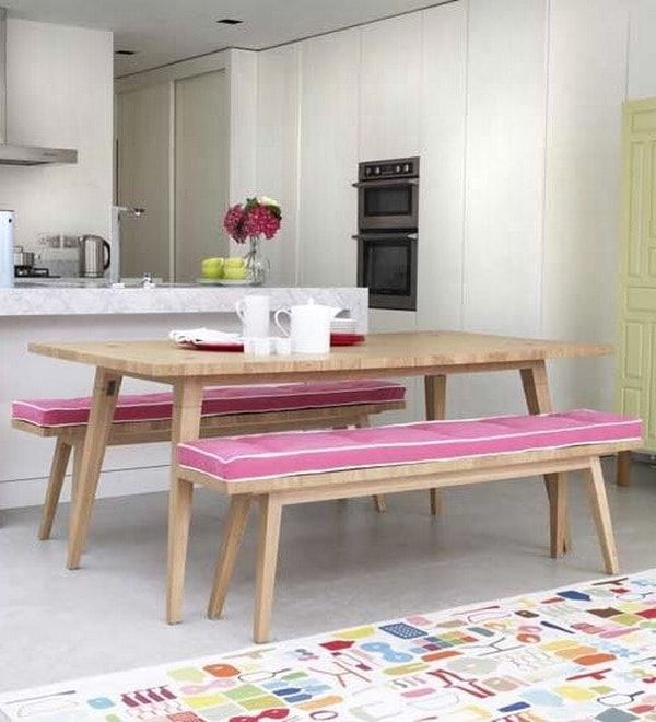 Pe langa avantajul de a fi practice, bancile pentru dining pot fi gasite in diferite materiale si stiluri. Daca vom alege sa le decoram cu diferite perne colorate, preferabil in tonurile de culoare care predomina in amenajarea dining-ului, ne vom putea bucura instant de un dining foarte functional si stilat.