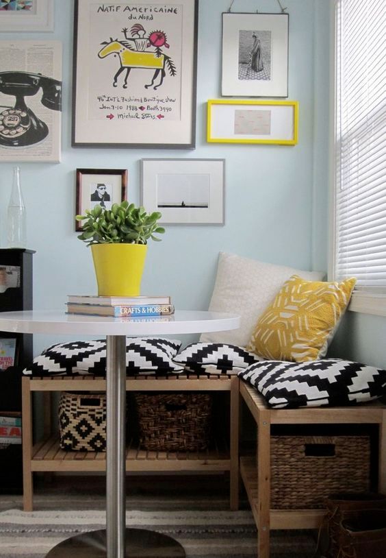 Daca spatiul destinat dining-ului iti permite sa amesteci diferite tipuri de piese de mobilier, poti opta pentru o banca caracterizata prin linii simple si moderne alaturi de care sa adaugi cateva scaune in stil vintage. O alta idee pe care ti-o recomandam este sa vopsesti bancile si scaunele in culori care sa se completeze sau sa le uniformizezi culorile si sa le decorezi cu textile si perne in tonuri contrastante.