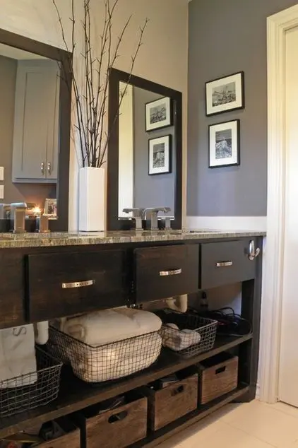 Foloseste suporturi multifunctionale: o etajera sau un calorifer tip suport care sa iti permita sa tii prosoapele pe el chiar daca acestea nu sunt ude. Poti incerca si varianta unornisecare sa preia din spatiul necesar stocarii lucrurilor.