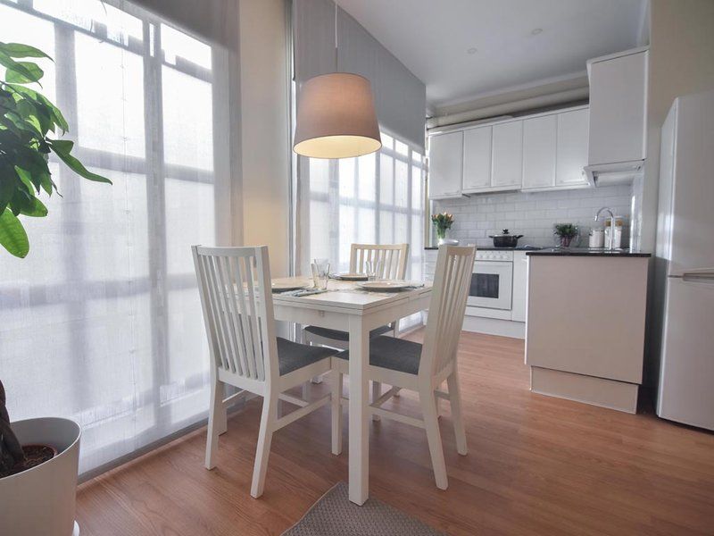 Structura bucatariei sub forma literei L integreaza zona de luat masa printr-un mobilier extensibil care poate gazdui cu succes o masa in familie.