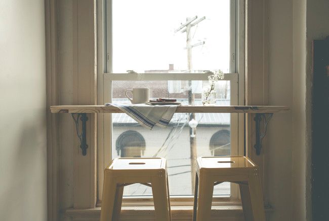 Amenajarea unei masute in dreptul ferestrei este ideala pentru persoanele care locuiesc singure sau pentru cuplurile care nu prea au timp sa ia masa deseori acasa.