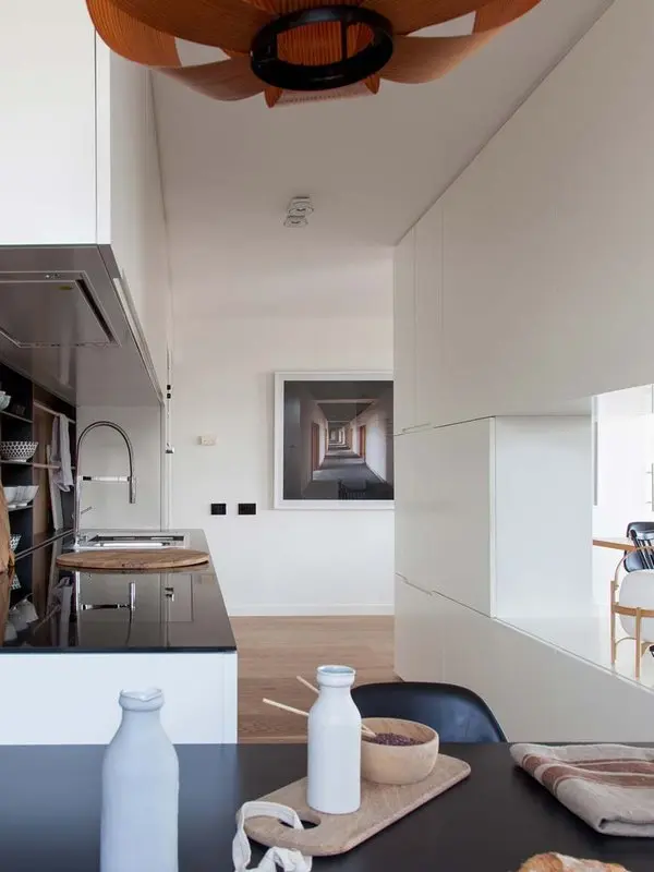 Accentele de negru si asocierea cu lemnul impreuna cu piesele de design contemporan ofera acestei amenajari o latura avangardista intr-un decor extrem de bine realizat. Studioul de arhitecturaY LA Ba prezentat acest proiect in cadrul Barcelona Design Week 2015 si succesul a fost unul graitor.