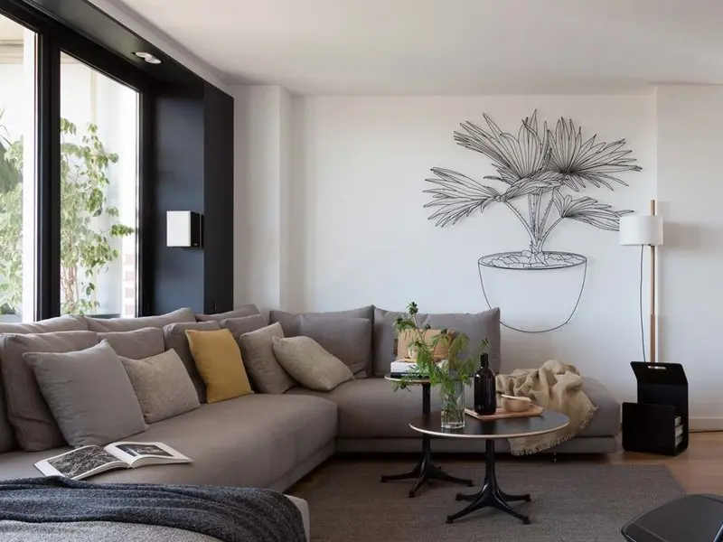 Un cadru cromatic neutru cu accente de negru si asimetria masutelor
