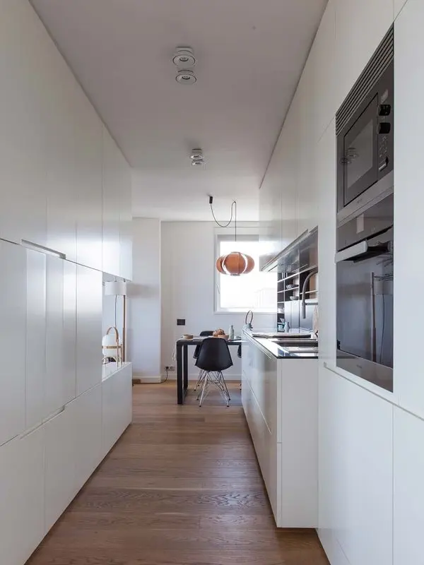 Suprafete netede si lucioase, mult alb iata trasaturile acestei bucatarii minimaliste