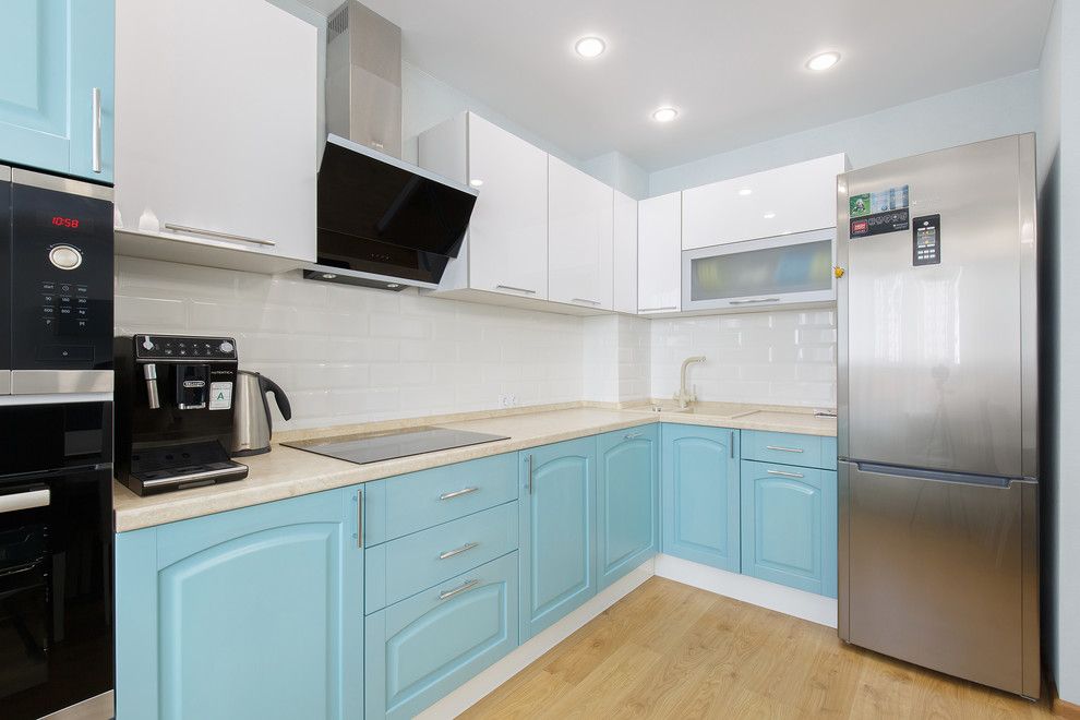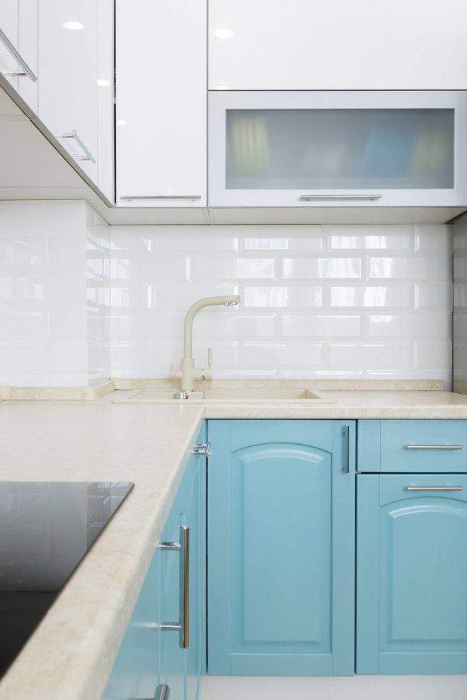 Ferestrele mari permit o cantitate mare de lumina naturala, iar albul predominant sporeste efectul de spatialitate. Albastrul pastel e motivul cromatic care predomina in acest spatiu, oferind un accent de culoare placut integrat in contextul general. Acelasi albastru il vom regasi si la nivelul bucatariei, mai exact pe frontul dulapurilor principale.