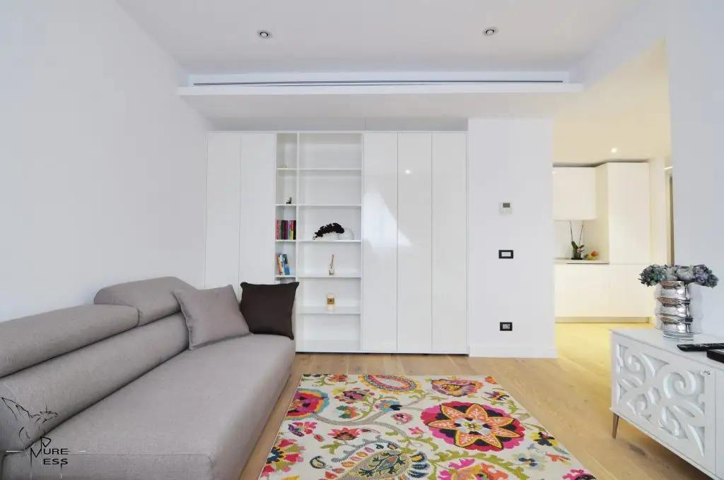 Astfel, Sergiu si echipa sa au pornit creionarea apartamentului in tonuri de alb si beige, o cromatica neutra, confortabila atat vizual cat si din punct de vedere al posibilitatilor de explorare a decorului.