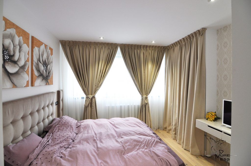 Dormitorul matrimonial a fost proiectat pentru a crea o imagine care favorizeaza o energie pozitiva si odihnitoare. Tapetul marcheaza o zona de accent discret conturata. Tonurile de beige ale draperiilor au fost atent alese pentru a permite patrunderea unei cantitati potrivite de lumina, armonizandu-se cu nuantele tapetului si tabliei de pat.