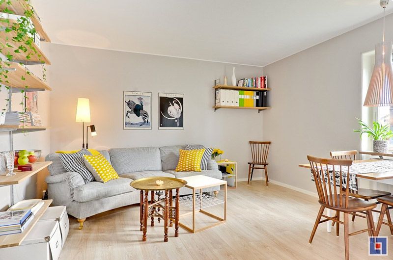 Avem de-a face cu un apartament mic de 35 de metri patrati, tip open space cu o singura camera principala, dar bine compartimentata. Living, bucatarie si dormitor, toate aceste zone isi gasesc loc in aceasta amenajare. Exista fluenta, unitate si mai ales stil. De inspiratie scandinava, apartamentul reflecta principalele trasaturi ale acestui stil nordic.