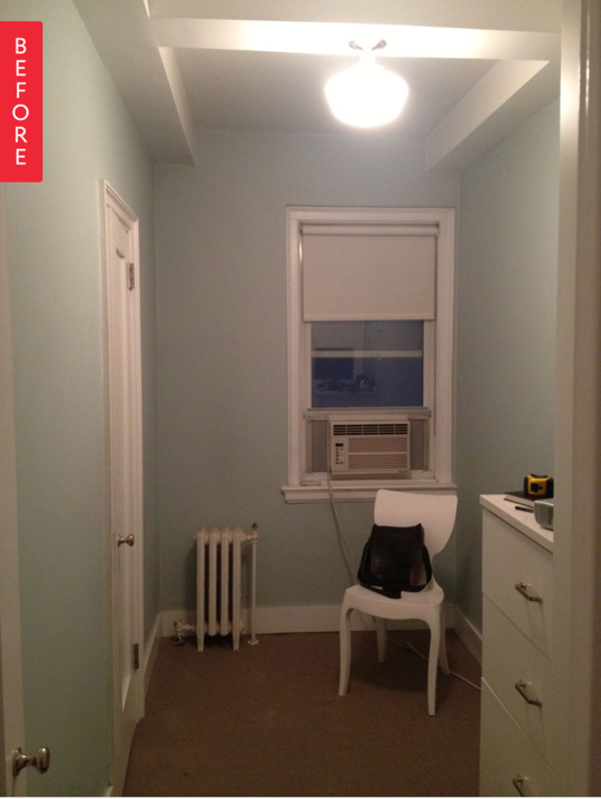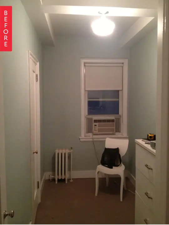 Amenajarea unui dormitor mic a fost intotdeauna o provocare. O camera foarte ingusta are anumite obstacole care pot fi depasite doar cu multa imaginatie si inteligenta. Spre exemplu, aceasta camera mica, aflata intr-o cladire veche, a carei latime nu o depaseste pe cea a unui pat pentru doua persoane.