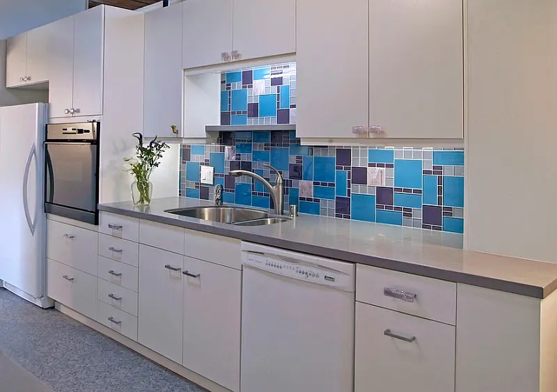 Albastrul ofera si el o multitudine de posibilitati atunci cand vorbim deamenajarea bucatariei. De la albastru cobalt la tonurile deschise ale turcoazului, aceasta culoare se asorteaza de obicei cu dulapurile bucatariei sau cu blatul. Alegeti in acest sens, variatiile cu alb sau cu lemn inchis sau deschis la culoare in functie de nuanta de albastru folosita.