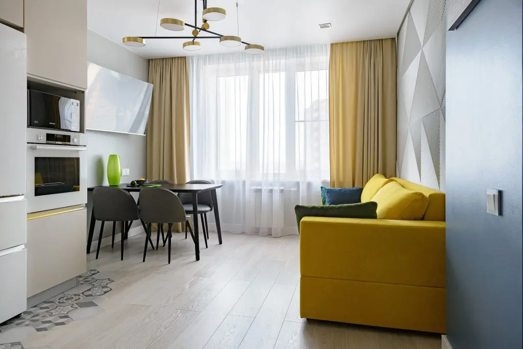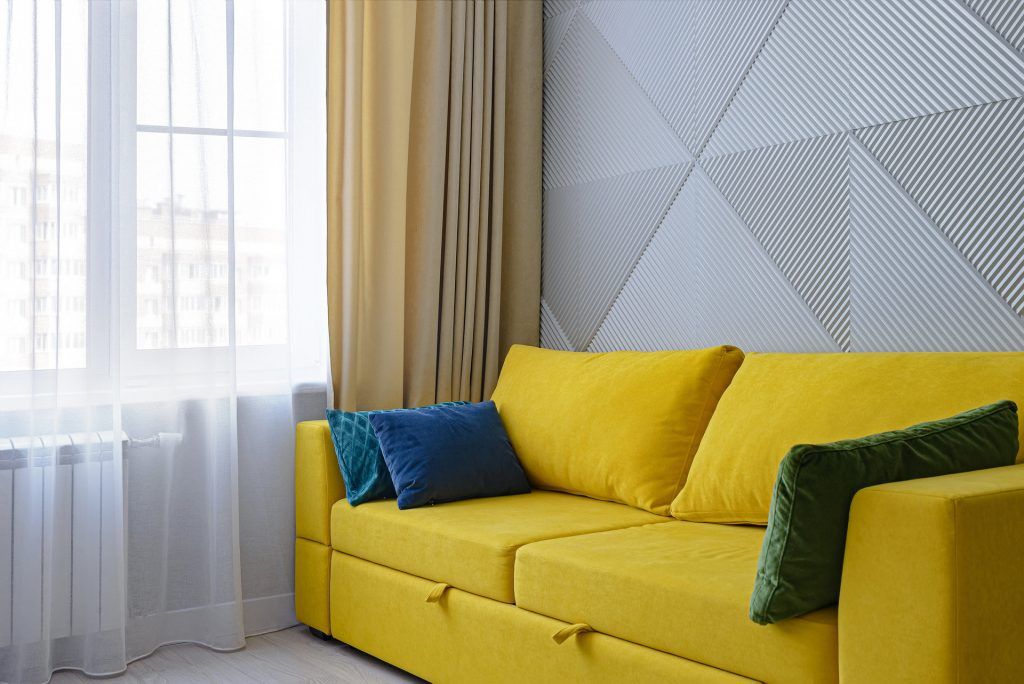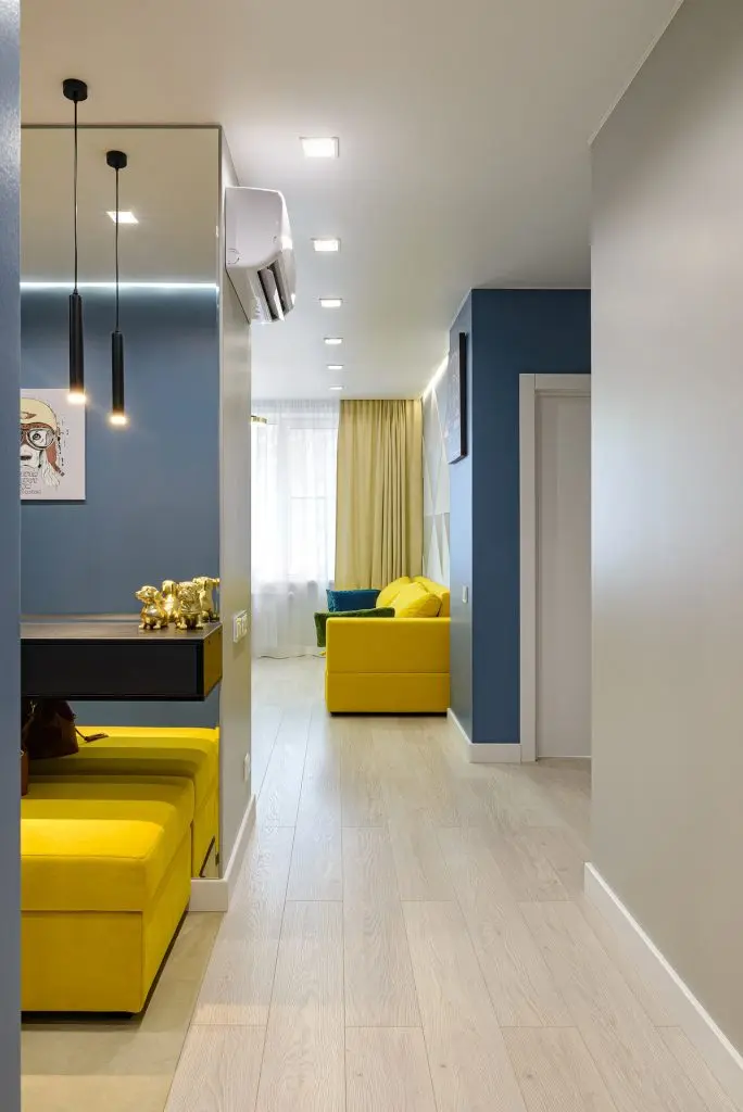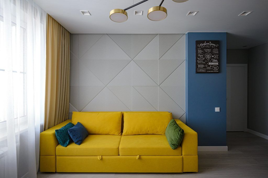 In privinta paletei cromatice, designerul ne povesteste ca totul a pornit de la nuanta de galben-mustar a canapelei.