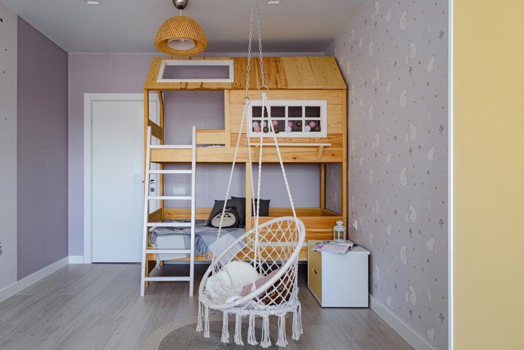 Avand la dispozitie un buget limitat, au folosit putine decoratiuni. Ca accent in living au fost propuse panouri decorative tridimensionale, care creeaza iluzia optica aunui spatiu amplu. Camera copilului, cea mai ampla si luminoasa este pusa in valoare de tapetul vesel si nuante placute de violet. Patul supraetajat a fost realizat chiar de tatal micutei.