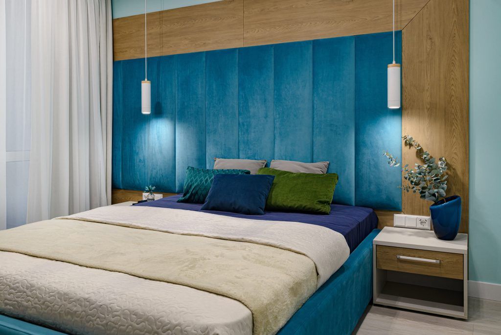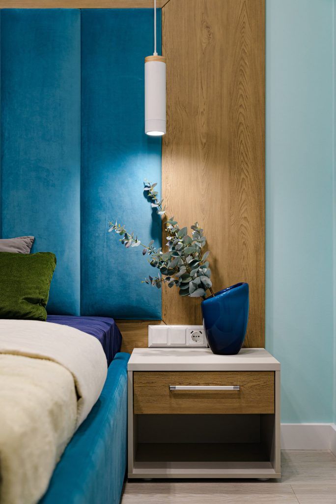 Mai apoi, intregul concept cromatic s-a conturat in jurul acestei culori. Pentru a o pune in valoare, a fost contrastata de nuanta de albastru propusa pentru peretele din living. Restul mobilierului a fost gandit in nuante deschise, calde.