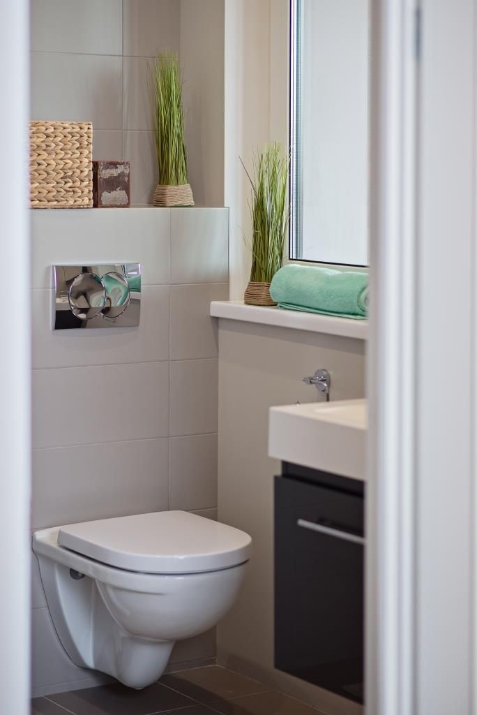 In bucatarie si in holul de la intrare, gresia delimiteaza vizual aceste spatii de camera de zi. Baia si zona de relaxare din balcon au parte la randul lor de un tip diferit de gresie, insa in aceleasi tonuri calde, neutre.