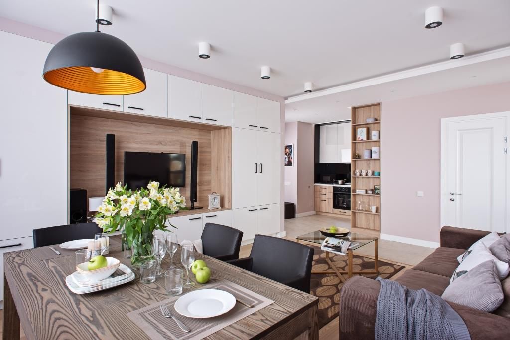 Apartamentul asupra caruia ne concentram atentia astazi este amenajat de Sohointeriors, un studio de design din Rusia. Intr-un spatiu de dimensiuni relativ reduse 55 metri patrati, asa cum poate fi caracterizat acest apartament, interventia unui designer si-a facut vazuta prezenta.