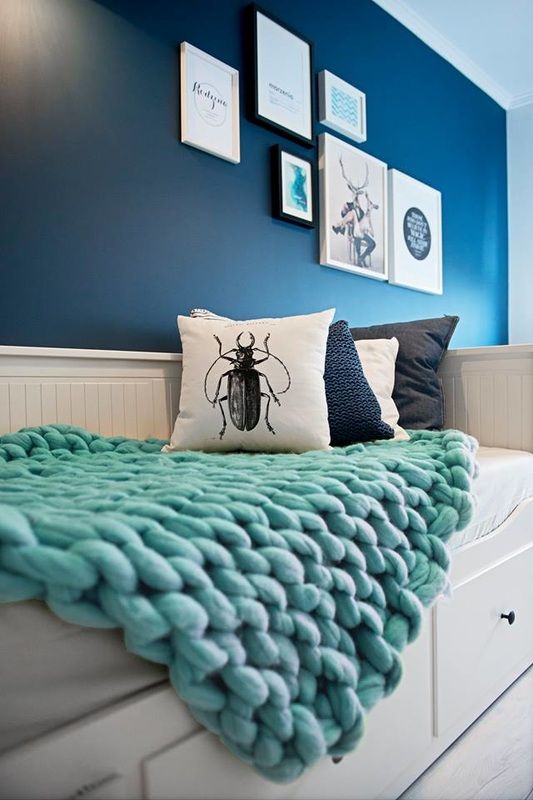 Combinatia de bleu-pal si alb lasa locul unui albastru mai intens in camera dedicata biroului. Tusele de alb contrabalanseaza intensitatea culorilor si echilibreaza decorul.