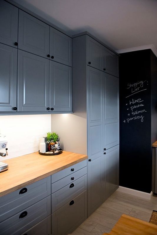 Pentru bucatarie nuantele de bleu-gri si accentele de negru creeaza o ambianta foarte placuta la care contribuie din plin luminile de accent. Cu o structura compacta, in forma de U, bucataria este complet functionala cu zone de lucru eficient amenajate si spatii de depozitare generoase.