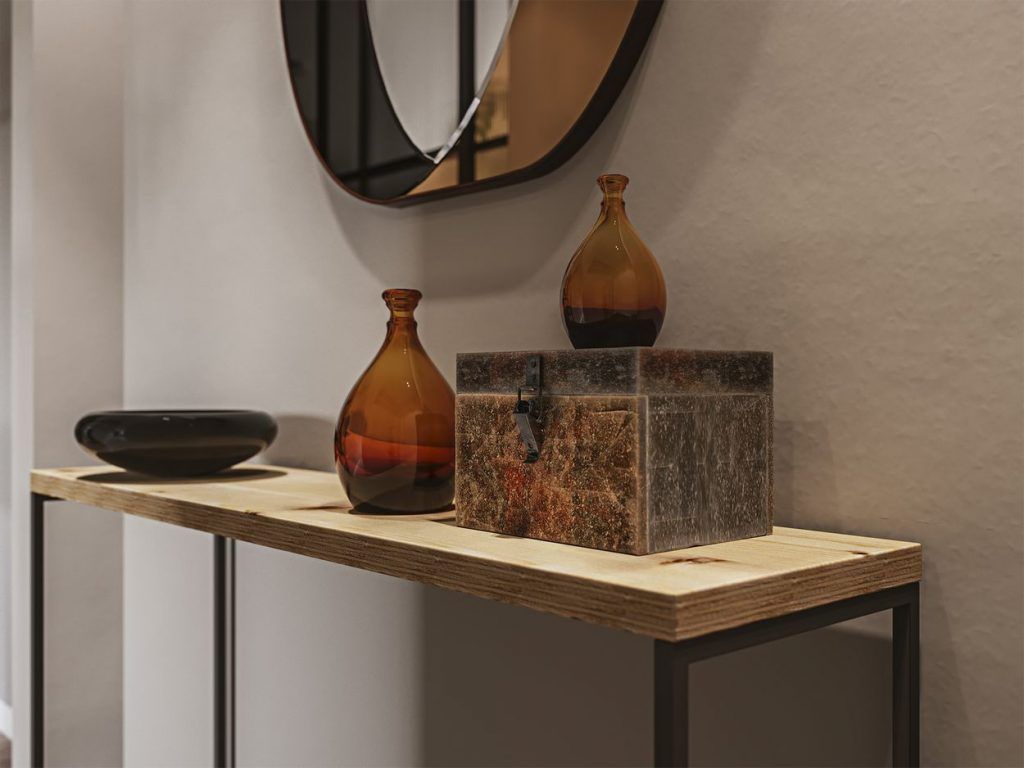 Eliberand camera de dulapurile mari, s-a putut amenaja un corp multifunctional ce include si o masuta de machiaj. Imbogatit cu decoratiuni si accesorii, spatiul capata personalitate si stil.
