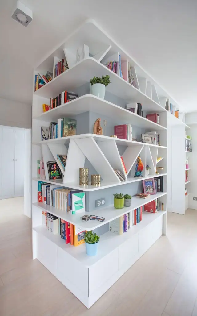 Biblioteca ce face trecerea dinspre camera de zi inspre hol