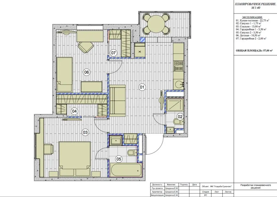 In locul spatiului planificat initialca bucatarie living, a aparut o camera de copil si un dressing; zona de dining a fost mutata in spatiul logiei. Existau mai multe variante de compartimentare insa rolul decisiv asupra solutiei finale l-a avut aparitia bebelusului in familie.