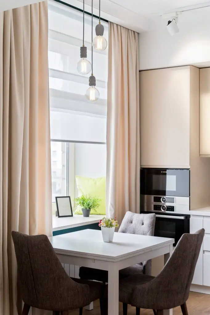 Albul si cremul folosit pentru frontul mobilierului sporesc senzatia de lumina si incaperea pare mai mare, mai primitoare.