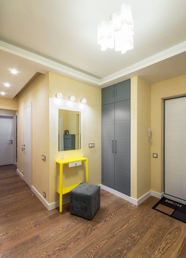 Pentru spatiul acestui apartament, designerul a mizat pe galben ca tematica cromatica principala. Astfel, il vom gasi sub diferite forme in toate incaperile, excelent integrat in decor.