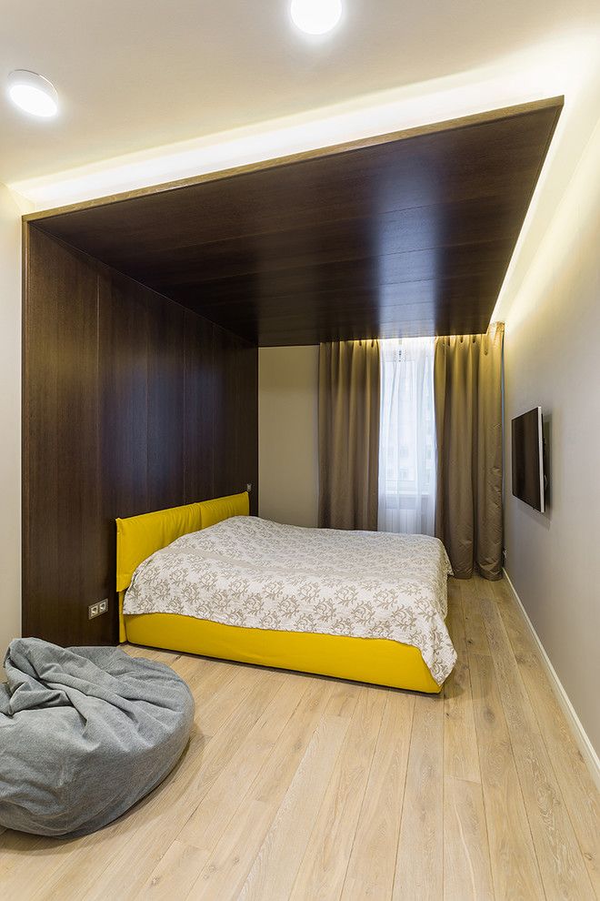 Cele doua dormitoare preiau abordarea minimalista dezvoltata in restul amenajarii. Pentru camera copilului s-a preferat un decor mai vesel si colorat, cu o mobilare pe masura nevoilor, depozitare, pat, loc de facut temele si o mini-biblioteca pentru carti si alte materiale didactice.