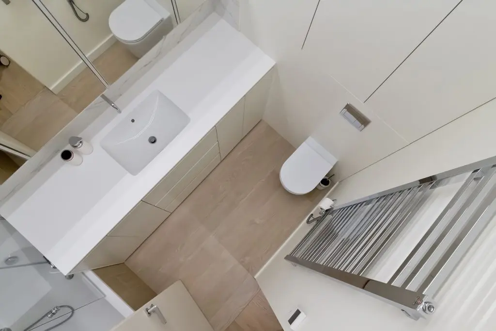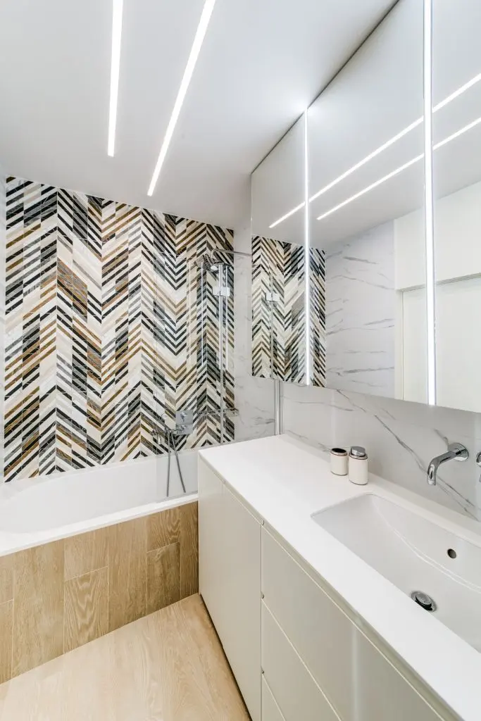 Baile pastreaza echilibrul intre estetic si functional. Se opteaza pentru o baie in alb si negru cu cabina de dus pentru a optimiza spatiul si cealalta in alb cu crem.