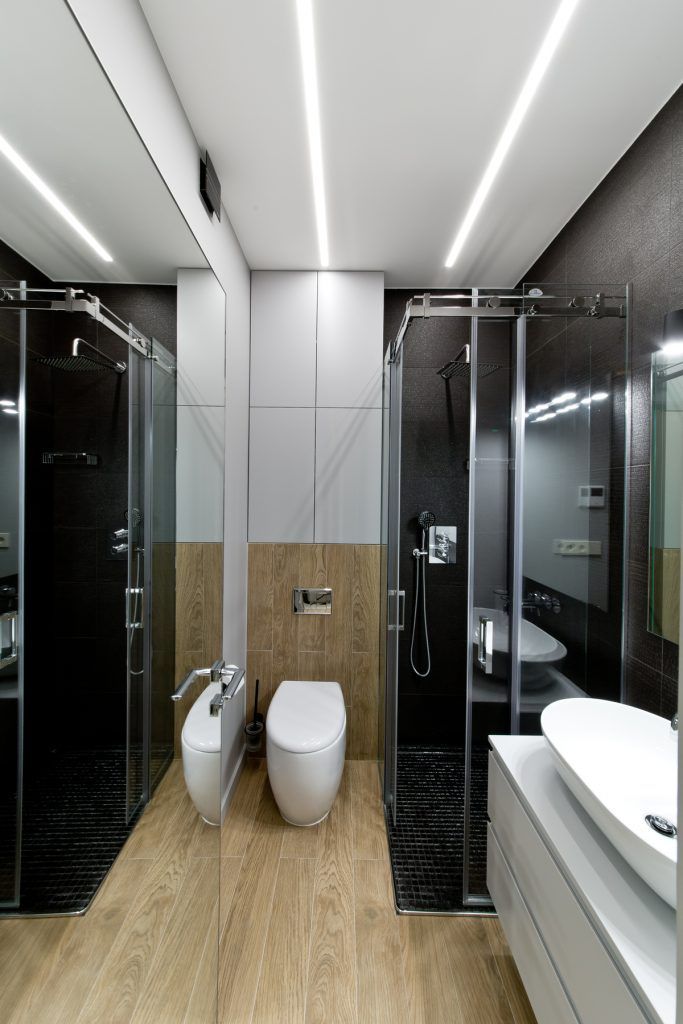 Baile pastreaza echilibrul intre estetic si functional. Se opteaza pentru o baie in alb si negru cu cabina de dus pentru a optimiza spatiul si cealalta in alb cu crem.