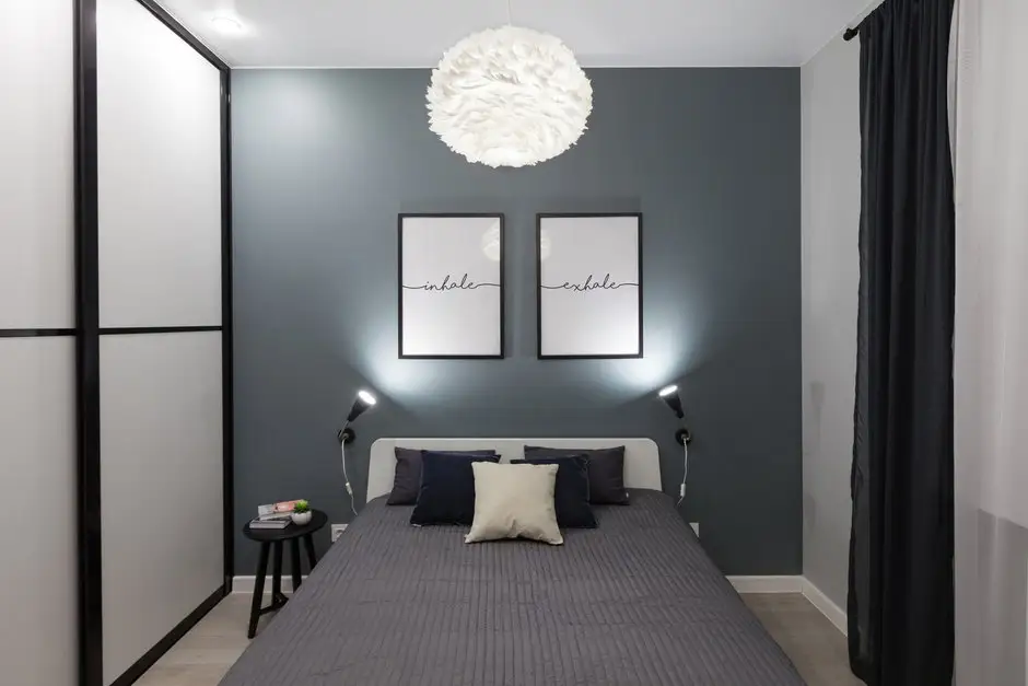 Pentru dormitor, cuvantul de baza este confortul. Ambientul este unul placut conturat, in tonuri relaxante, iar luminile ambientale seteza perfect atmosfera de dormitor. Tot aici, a fost amenajat si un spatiu de depozitare cu dulap pentru haine si un corp lateral amenajat ca o biblioteca.