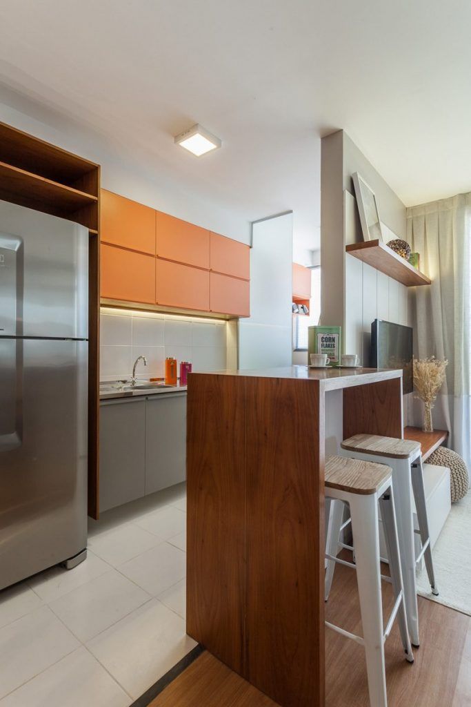 Spatiul a fost impartit in zona de zi cu living, bucatarie deschisa si loc pentru luat masa si cea de noapte cu dormitorul parintilor, cel al copiilor si baia. Pare usor nerealist pentru un apartament de doar 44 metri patrati, dar imaginile ne dovedesc ca se poate.