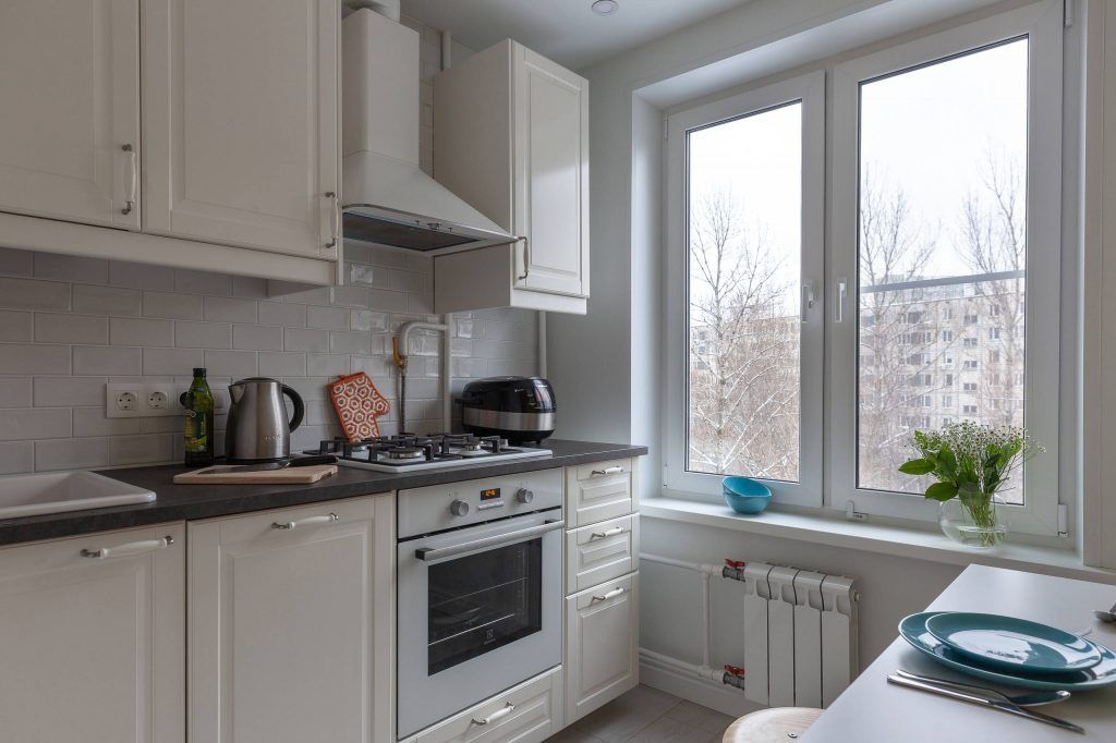 Pentru a amenaja spatiul bucatariei, la randul lui foarte restrans 5,7 mp, designerul a mizat pe solutii simple, dar mai ales functionale, asigurand strictul necesar pentru confortul intregii familii. Mobila a fost facuta la comanda, dispusa liniar iar electrocasnicele au fost incorporate. Desi initial si-au dorit ca figiderul sa fie integrat in spatiul bucatariei, dupa lungi dezbateri au ajuns la concluzia ca cel mai bine este ca acesta sa fie mutat pe hol.