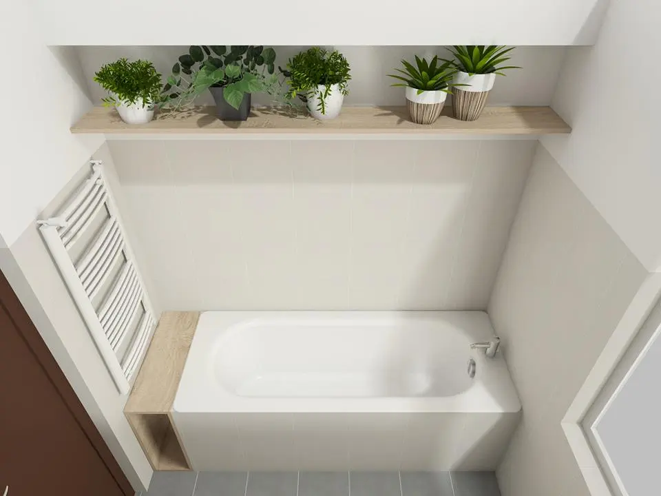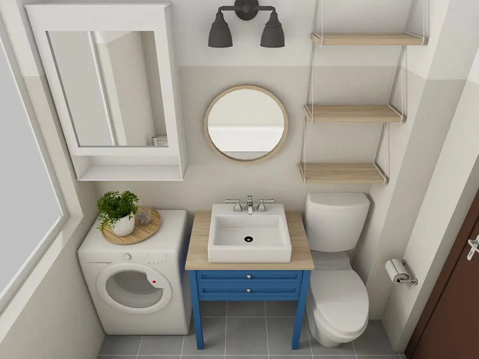 Spatiul baii optimizat pentru a include si masina de spalat si spatii de depozitare