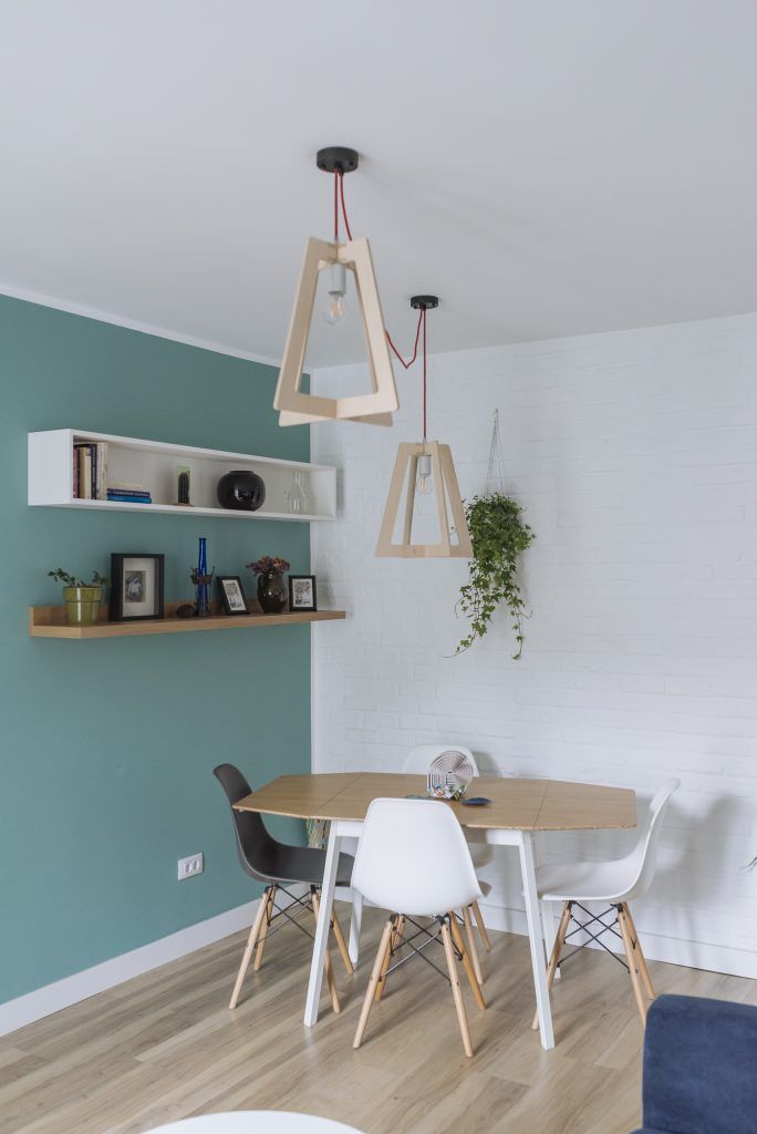 In camera de zi, cromatica este dominata de nuantele de albastru si turcoaz care se imbina excelent cu esentele de lemn natur. Amenajarea este minimala precum in interioarele tipic scandinave. Decoratiunile, plantele si mai ales corpurile de iluminat din lemn se imbina armonios pentru a contura un ambient placut si primitor. Tot aici a fost integrat si un mic spatiu pentru luat masa, cu scaune tip Eames, potrivite unui astfel de decor.