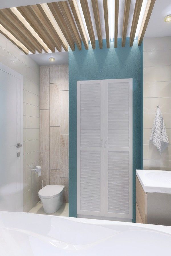 Pentru a largi usor perimetrul apartamentului, balconul a fost incorporat in spatiul locuibil, cateva rafturi deschise fiind amenajate cu decoratiuni si carti. Baia pastreaza si ea linii simple, interesante fiind grinzile din lemn adaugate in tavan.