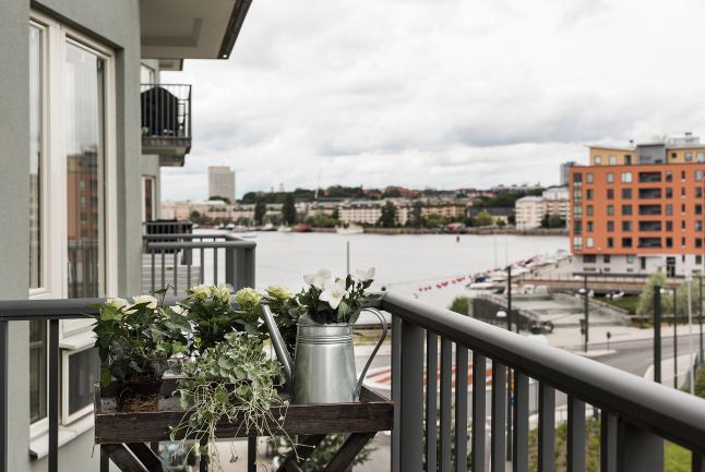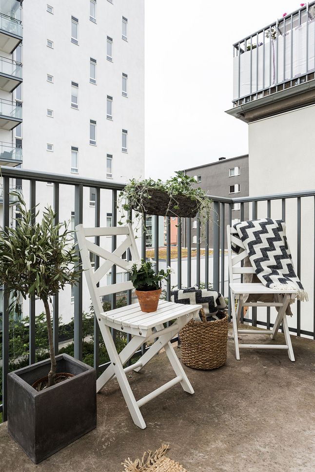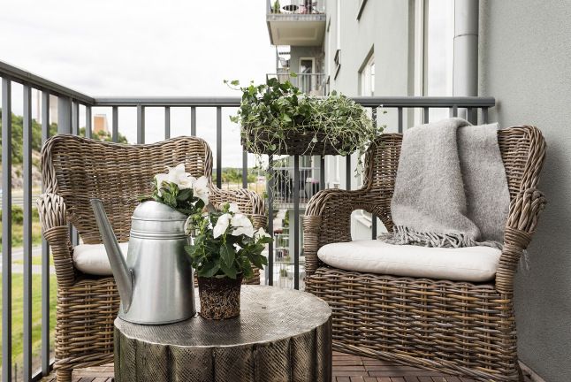 Doua scaune din ratan, o bancuta ingenioasa care pare realizata din 3 scaune si ghivece cu plante care sa aduca un strop din prospetimea gradinii aflate in curtea interioara a imobilului unde se afla apartamentul, asa am descrie locul unde mi-as incepe diminetile de weekend alaturi de o cafea aburinda.