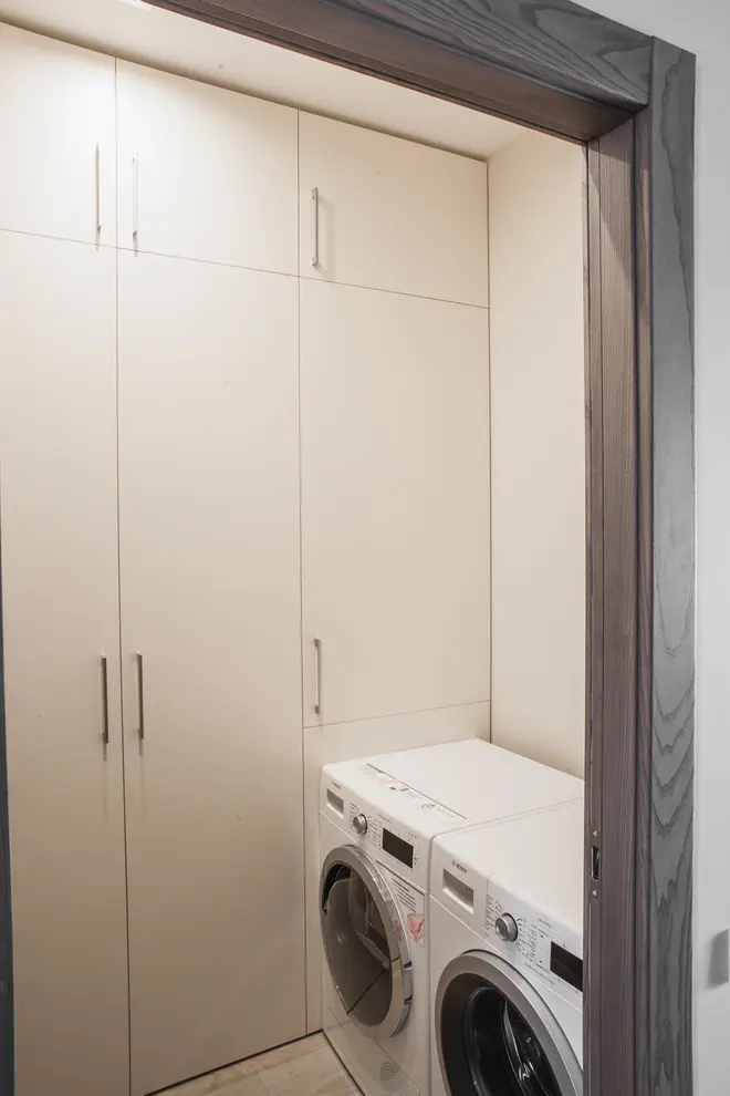 Amenajarea in sine este una aerisita, cu o abordare minimala. Fiecare functiune in parte este bine valorificata. Suprafetele netede si lucioase, designul in linii drepte, finisajele cu efect tridimensional, toate descriu un stil actual, cu care beneficiarii au rezonat din plin.