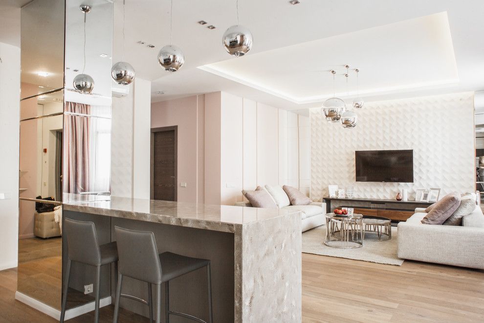 Design contemporan la superlativ, asa am descrie amenajarea acestuiapartament de doua cameredin Rusia. Spatiul impresioneaza prin detalii, finisaje si un iluminat scenografic. Elementele sunt atent alese pentru a contura un interior placut estetic, fara a ignora latura functionala.