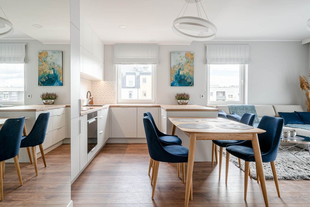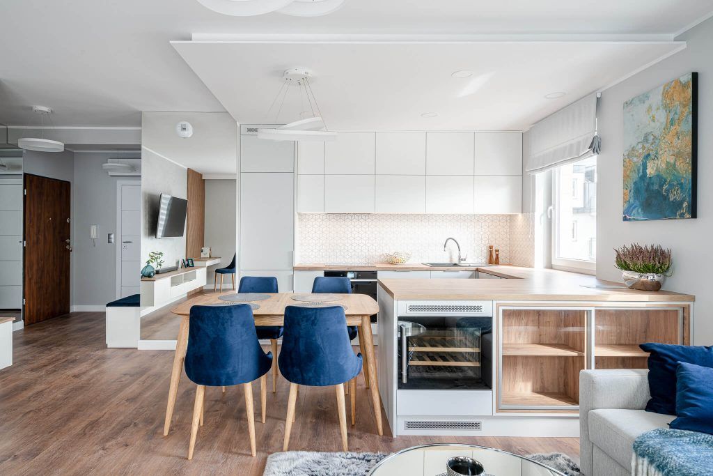 Designerii de la Caroline Art au creat o poveste moderna, functionala si atractiva vizual pentru acest apartament de trei camere din Varsovia.