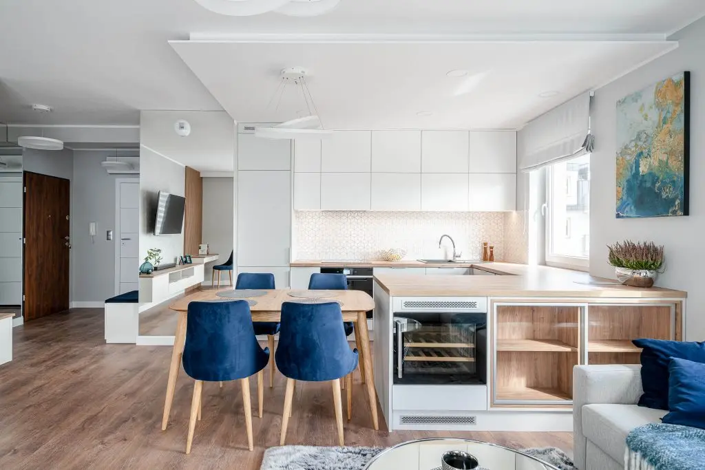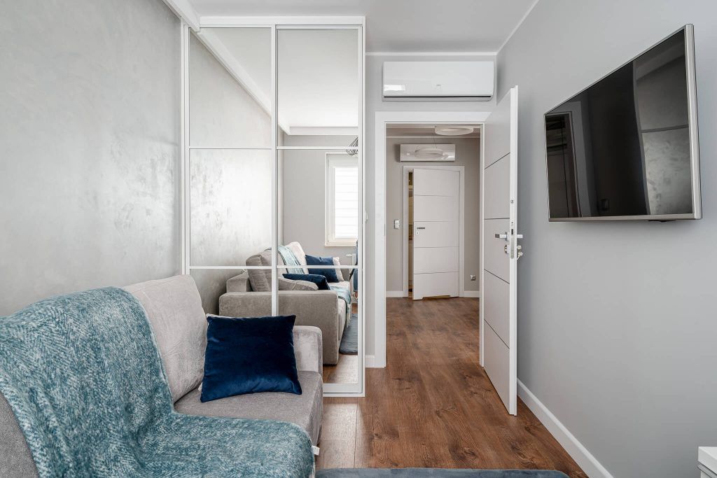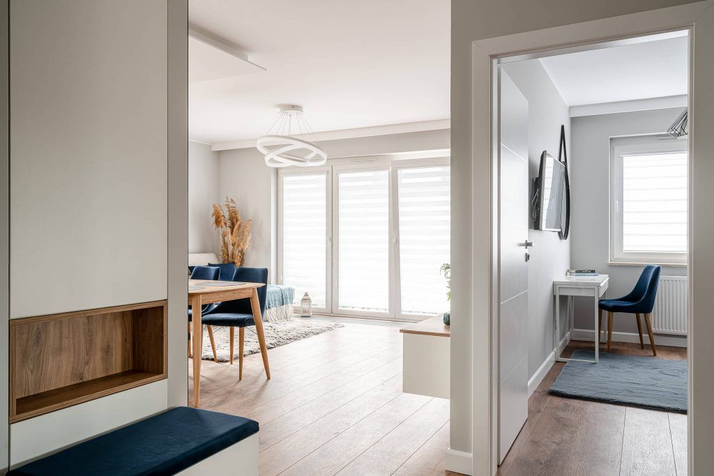 Cei 62 de metri patrati sunt distribuiti intr-o zona generoasa living-bucatarie deschisa si zona de dining, dormitorul matrimonial si un dormitor de oaspeti (cu o canapea extensibila si zona de lucru), o baie relativ mare si holul de intrare.