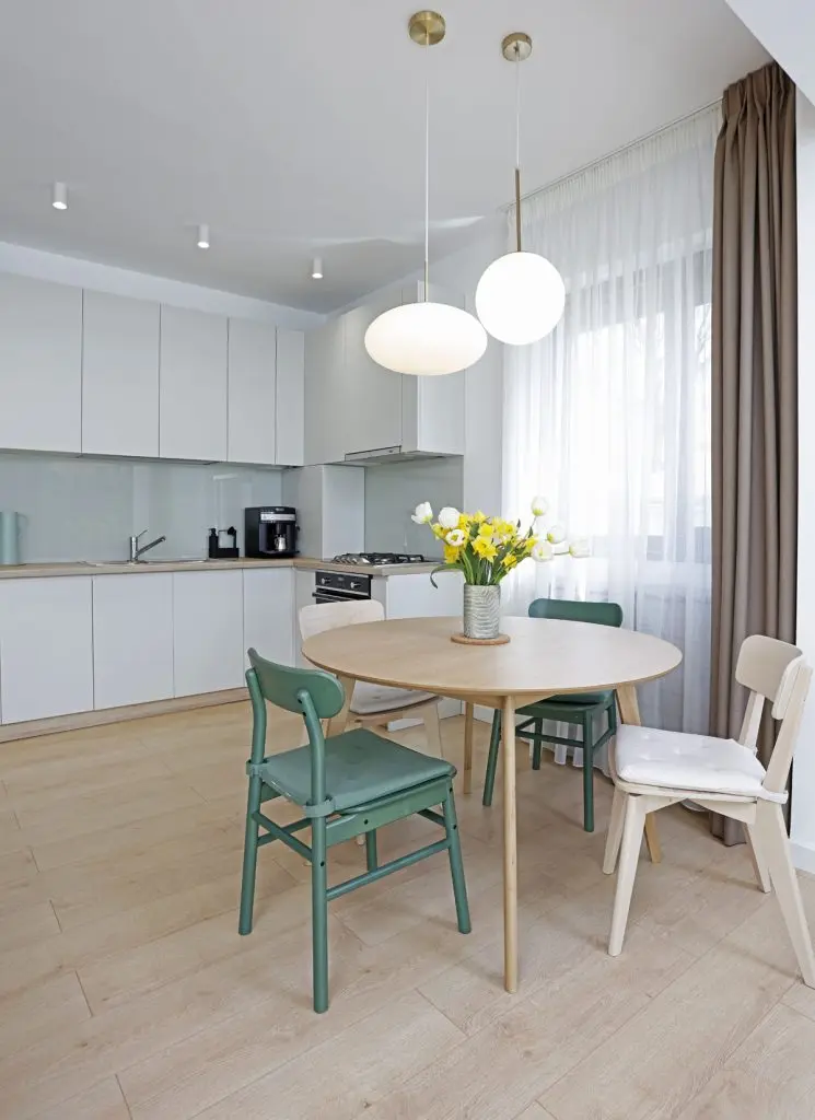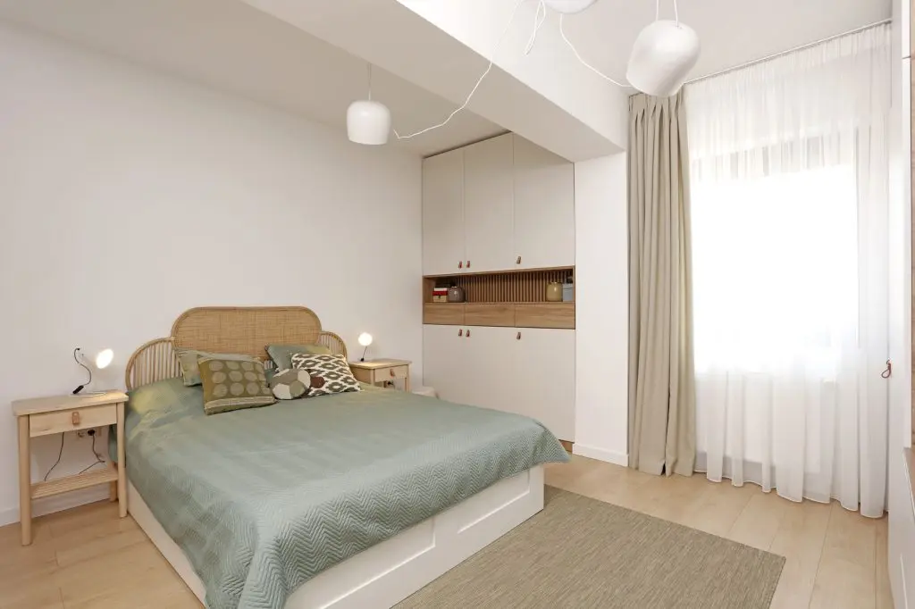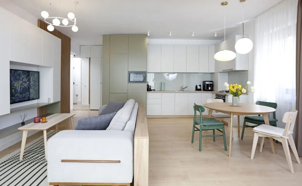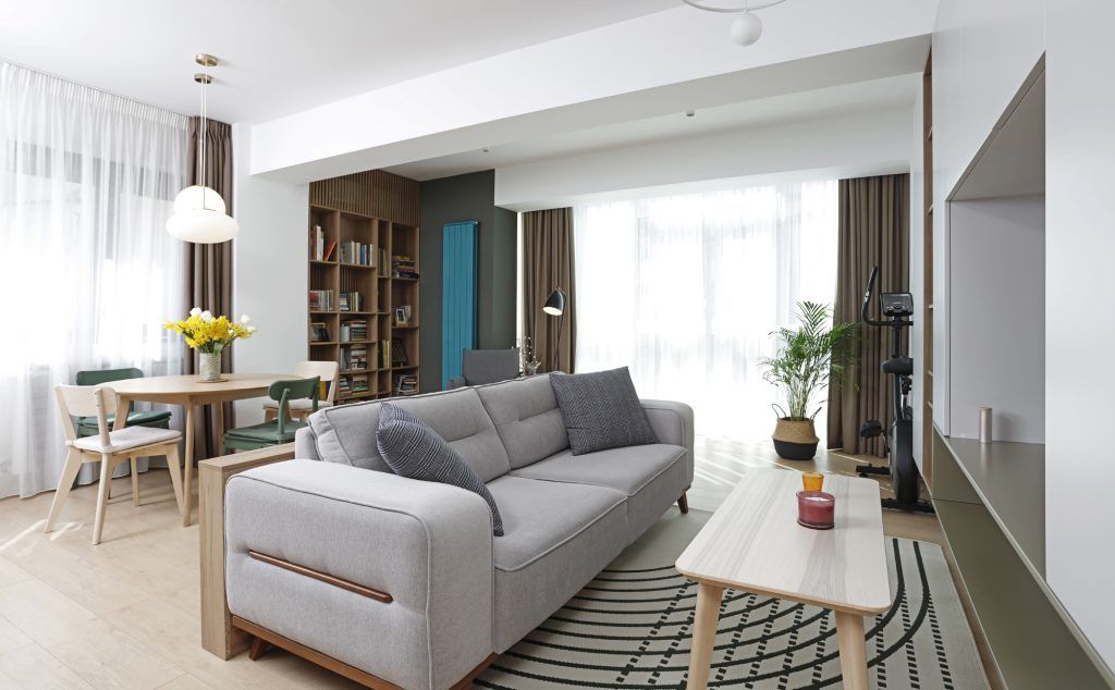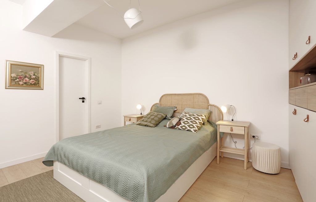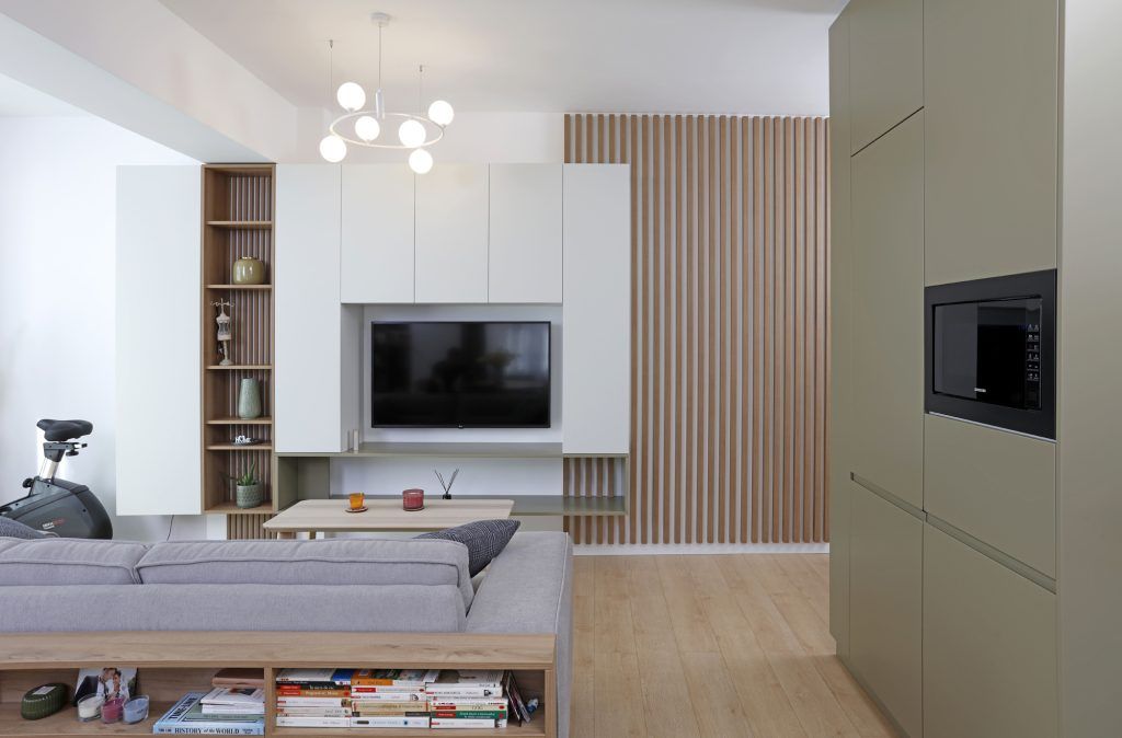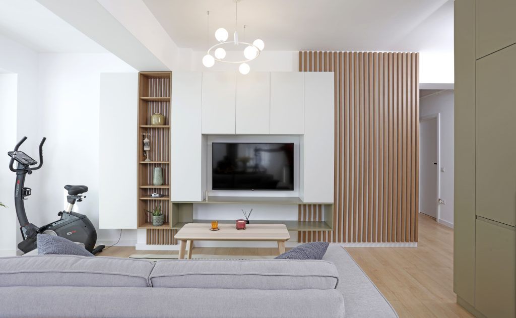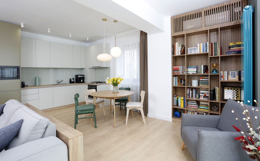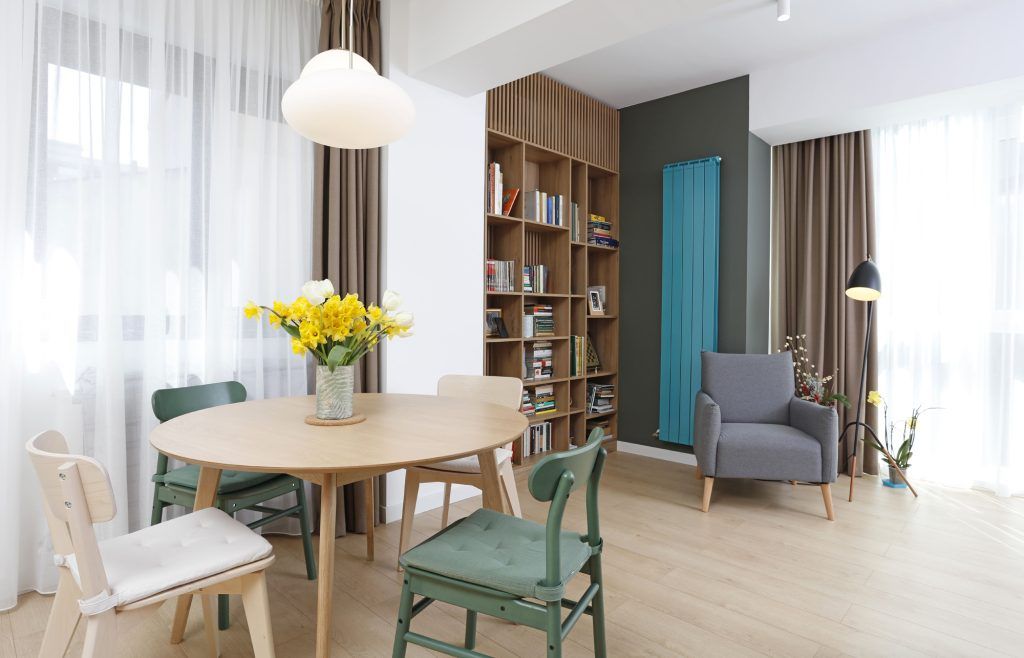 Mult alb, lemn masiv si placari de lemn deschis la culoare, accente de culoare in tonuri de verde pastel si turquoise, putine piese de mobilier dar atent alese, asa a fost conturata povestea unui apartament de trei camere din Bucuresti, amenajat anul acesta de Cristian Patrascu Studio.