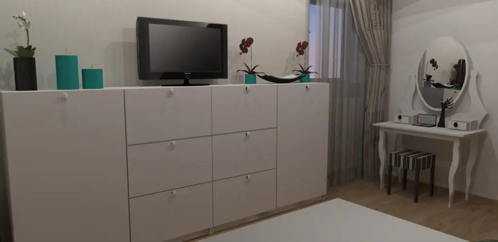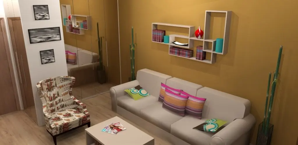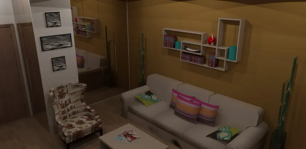 Mobilierul ales este din pal cu oglinzi fumurii, in bucatarie s-a optat pentru M DF lucios, in baie M DF vopsit, iar culorile dominante sunt calde si puse in evidenta cu ajutorul catorva accente de culoare tonica. Linia generala este una minimalista, completata de o zona clasica: diningul apartamentului.