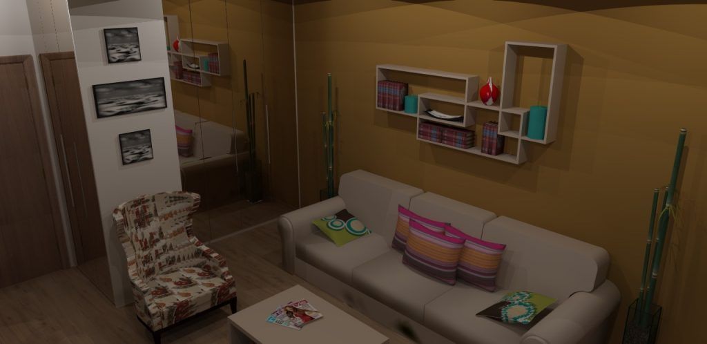 Mobilierul ales este din pal cu oglinzi fumurii, in bucatarie s-a optat pentru M DF lucios, in baie M DF vopsit, iar culorile dominante sunt calde si puse in evidenta cu ajutorul catorva accente de culoare tonica. Linia generala este una minimalista, completata de o zona clasica: diningul apartamentului.