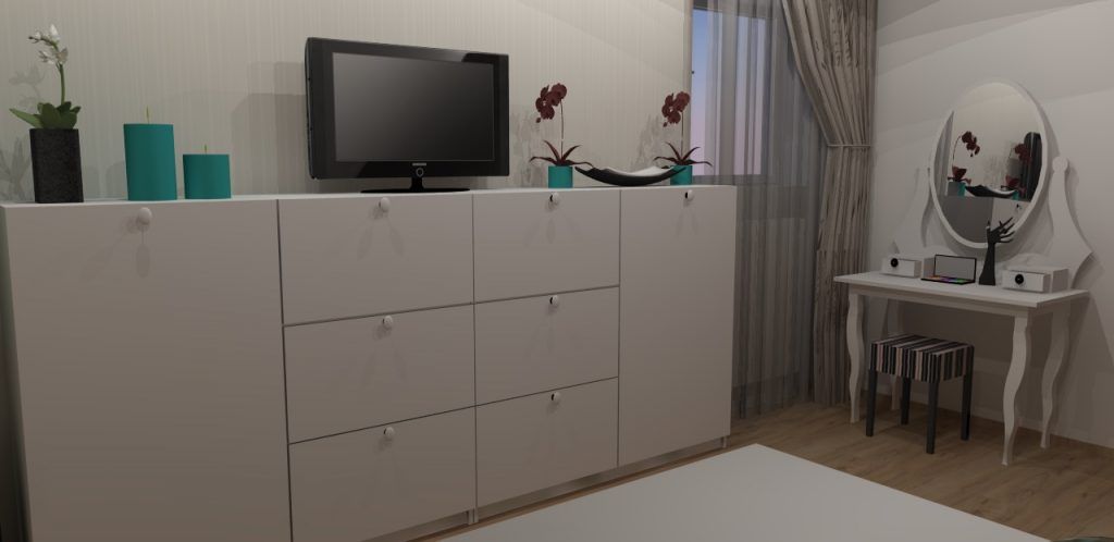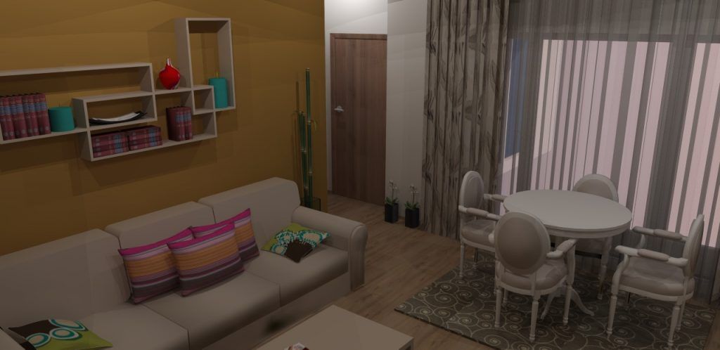 Deschide GaleriaDespre cele mai complexe modificari aduse in cadrul lucrarii, designerul ne spune ca " am decis sa prelungesc peretele care sustine T V-ul din living cu 120 de centimetre preferand astfel sa ascund o parte din bucatarie sis a pozitionez televizorul altfel decat era prevazut initial de constructorul complexului rezidential.
