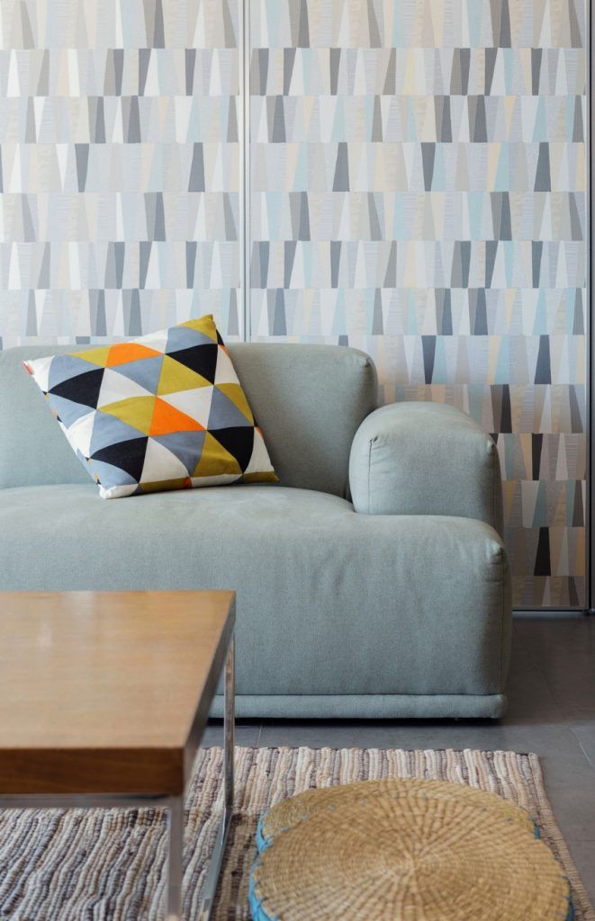 Jocul intre cald si rece in ceea ce priveste culorile alese pentru pereti si tavan creeaza o anumita tensiune care improspateaza atmosfera din punct de vedere vizual.