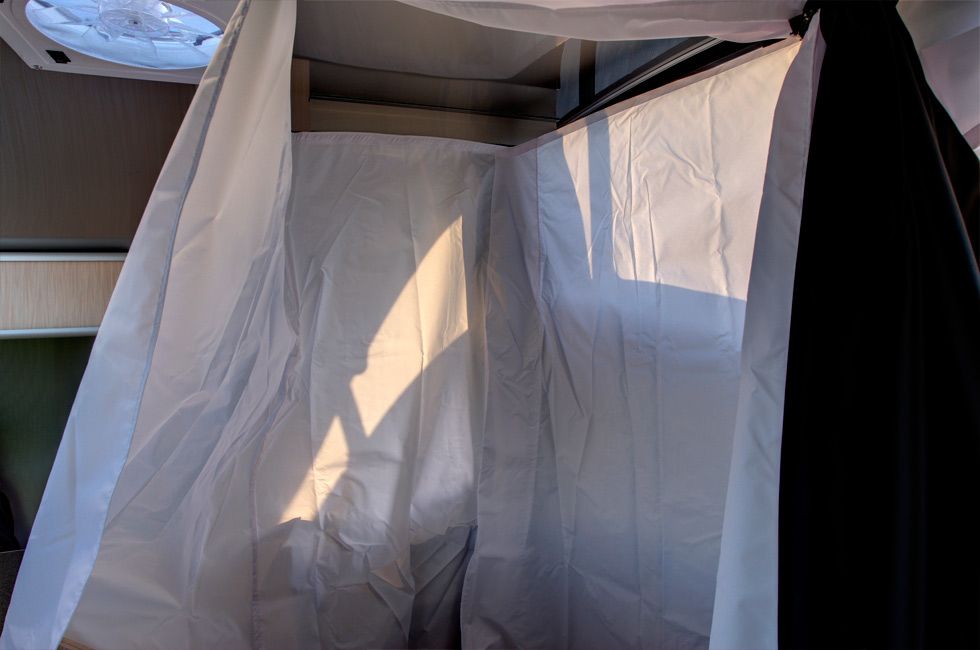 Avand un tavan la inaltimea de 2,10 m, aceasta rulota poate incapea cu usurinta in garajul casei tale, unde va fi in siguranta, oferind totodata destul spatiul pentru a concepe un interior extrem de bine dotat, organizat si compartimentat.
