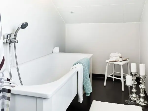 Baia mica, cu podea neagra si suport de lumanari vintage