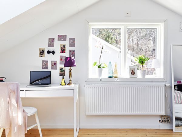 De multe ori un inconvenient al locuitului la mansarda este insuficienta luminii naturale. Insa, in acest caz, spatiul primeste o cantitate suficienta care sa scoata in evidenta frumusetea locuintei si mai ales sa sporeasca senzatia de spatialitate. Gratie ferestrelor montate in tavan si peretilor vopsiti intr-un alb stralucitor, intreaga locuinta pare aerisita si dinamica.