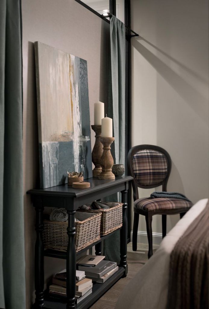 Pentru dormitorul nou creat, designerii au mizat pe un decor elegant, usor feminin, dar si pe obtinerea unei maximum de functionalitate tinand cont de dimensiunile reduse. Desi o parte din depozitare se afla in hol, ei au reusit sa integreze si aici doua corpuri simetrice de dulap unite printr-o scafa cu spoturi. Pentru spatiul cu geam vizibil din living s-au folosit draperii asigurand astfel un nivel optim de intimitate. Cromatic, s-au folosit culori mai reci, estompate pentru a spori confortul vizual in incapere.